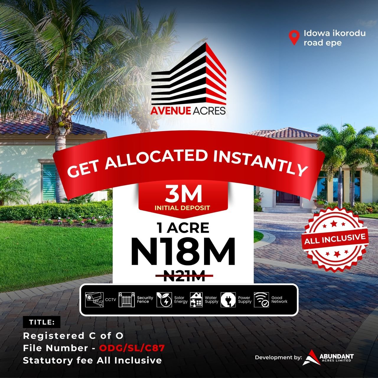 Avenue Acres combines tranquility and modern comforts to create the perfect getaway from the hustle and bustle of the city. Situated in the serene and culturally rich community of Idowa along Epe-Ikorodu Road, this exclusive estate offers a truly distinctive holiday experience.