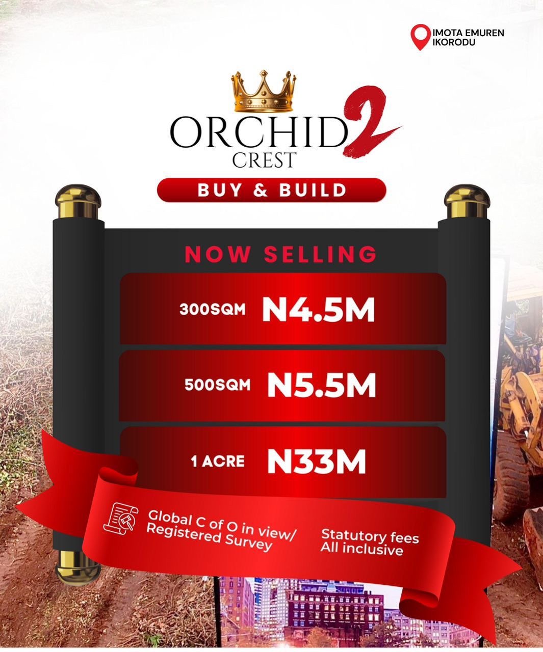 Welcome to Orchid Crest 2 – a prime buy and build property nestled in the flourishing, well-planned community of Emuren Imota Ikorodu. Whether you’re looking to construct your dream home, invest in rental properties, or embark on your next significant real estate venture, Orchid Crest 2 is designed to fulfill your aspirations.