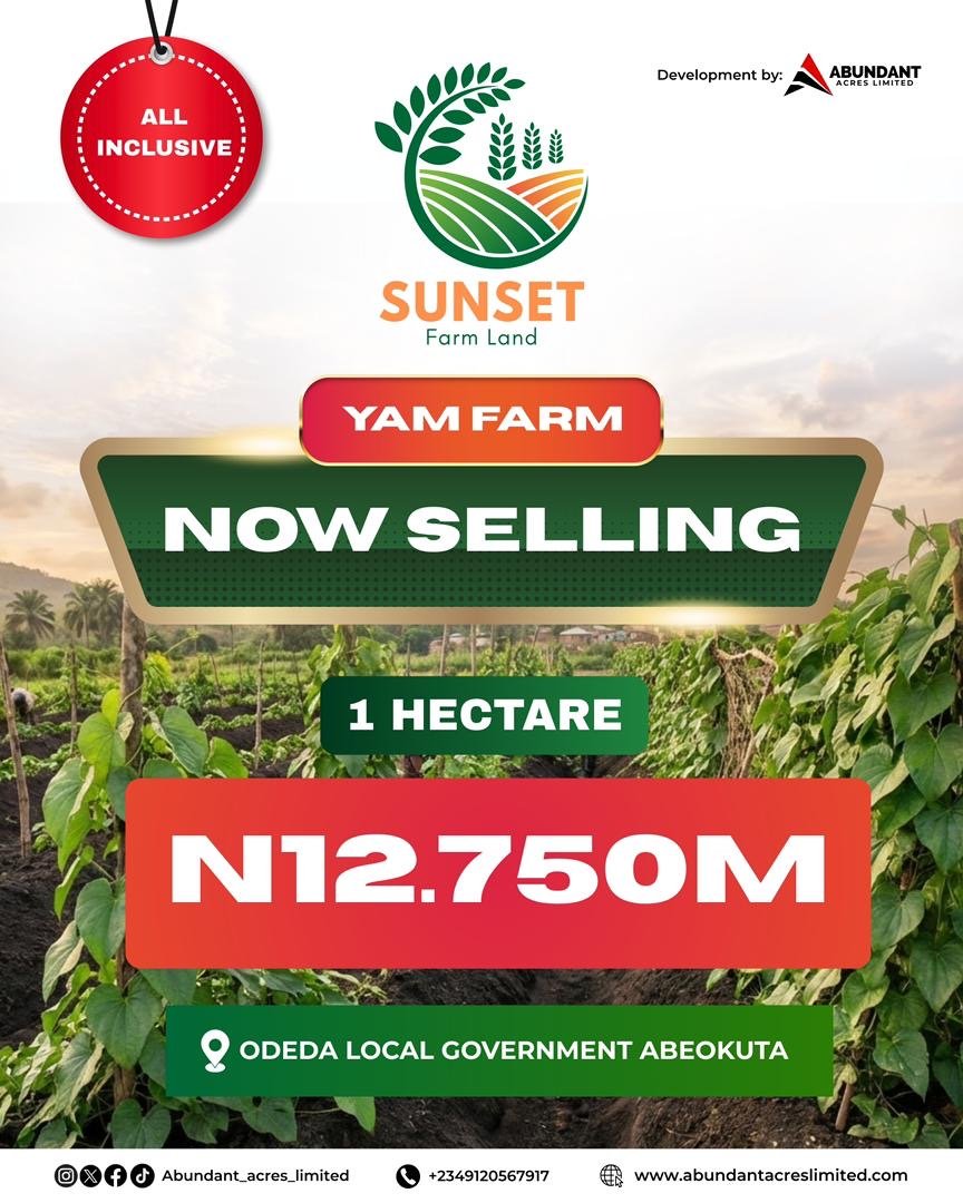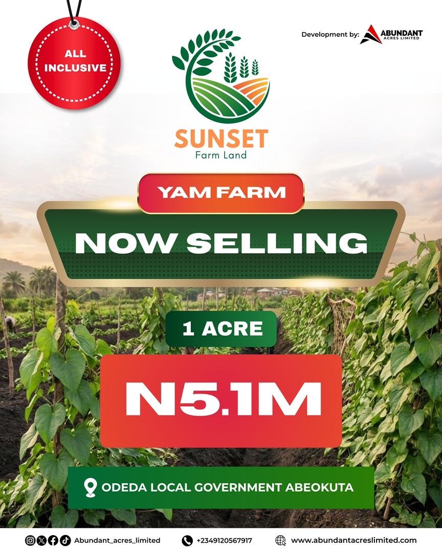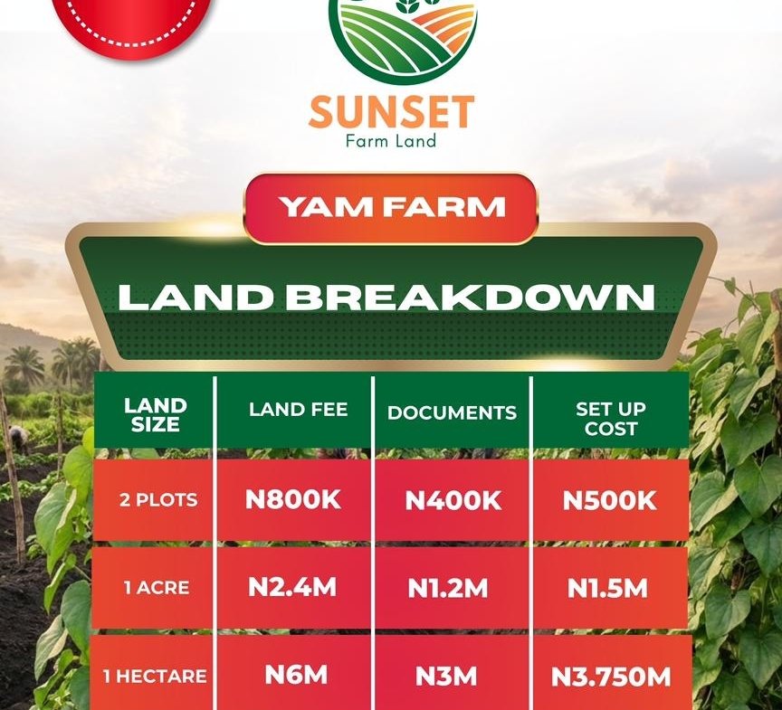 Here’s your chance to own yam plots in Sunset farm, a legacy that truly grows with every harvest .